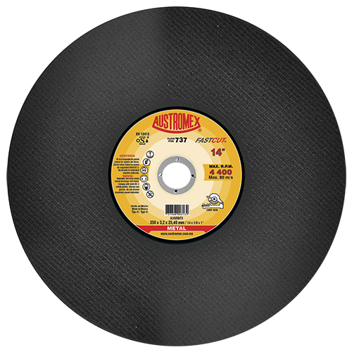 1. Aplicación • Para cortes rápidos de aceros estructurales y fundición. • Recomendado para cortar secciones huecas. • Máximo rendimiento en operaciones severas. 2. Instrucciones de operación • Utilice en una máquina chop saw. • Se puede montar en máquinas de potencia media hasta 5 HP. • Monte el disco y déjelo girar en vacío durante un minuto para vericar que no esté dañado. • No presione excesivamente, ni golpee contra el material de trabajo. 3. Información de seguridad • Antes de montar o desmontar el disco, vericar que la máquina esté desconectada. • Nunca exceda la velocidad periférica máxima marcada en la etiqueta. • Siempre utilice guardas de seguridad. • Se recomienda usar equipo de seguridad completo (guantes, protección auditiva, mascarilla y lentes de seguridad). • Nunca intente realizar cortes curvos. • Nunca utilice un disco que se haya mojado. • No utilice para operaciones de desbaste. • No utilice el disco en máquinas para las cuales no fue diseñado. • El uso inadecuad