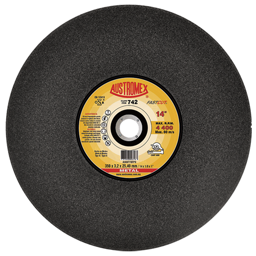 1. Aplicación • Para corte rápido de aceros estructurales y fundición. • Recomendado para cortar secciones sólidas. • Máximo rendimiento en operaciones severas. 2. Instrucciones de operación • Utilice en una máquina chop saw. • Se puede montar en máquinas de potencia media hasta 5 HP. • Monte el disco y déjelo girar en vacío durante un minuto para vericar que no esté dañado. • No presione excesivamente, ni golpee contra el material de trabajo. 3. Información de seguridad • Antes de montar o desmontar el disco, vericar que la máquina esté desconectada. • Nunca exceda la velocidad periférica máxima marcada en la etiqueta. • Siempre utilice guardas de seguridad. • Se recomienda usar equipo de seguridad completo (guantes, protección auditiva, mascarilla y lentes de seguridad). • Nunca intente realizar cortes curvos. • Nunca utilice un disco que se haya mojado. • No utilice para operaciones de desbaste. • No utilice el disco en máquinas para las cuales no fue diseñado. • El uso inadecuado