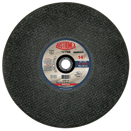 1. Aplicación • Recomendado para el corte de materiales de metal hueco como perles y tubulares. • Buena relación precio-rendimiento. 2. Instrucciones de operación • Utilice en una máquina chop saw. • Monte el disco y déjelo girar en vacío durante un minuto para vericar que no esté dañado. • No presione excesivamente, ni golpee contra el material de trabajo. 3. Información de seguridad • Antes de montar o desmontar el disco, vericar que la máquina esté desconectada. • Nunca exceda la velocidad periférica máxima marcada en la etiqueta. • Siempre utilice guardas de seguridad. • Se recomienda usar equipo de seguridad completo (guantes, protección auditiva, mascarilla y lentes de seguridad). • Nunca intente realizar cortes curvos. • Nunca utilice un disco que se haya mojado. • No utilice para operaciones de desbaste. • No utilice el disco en máquinas para las cuales no fue diseñado. • El uso inadecuado puede provocar lesiones severas. • Úsese como lo indica la norma ANSI B7.1. 4. Manejo
